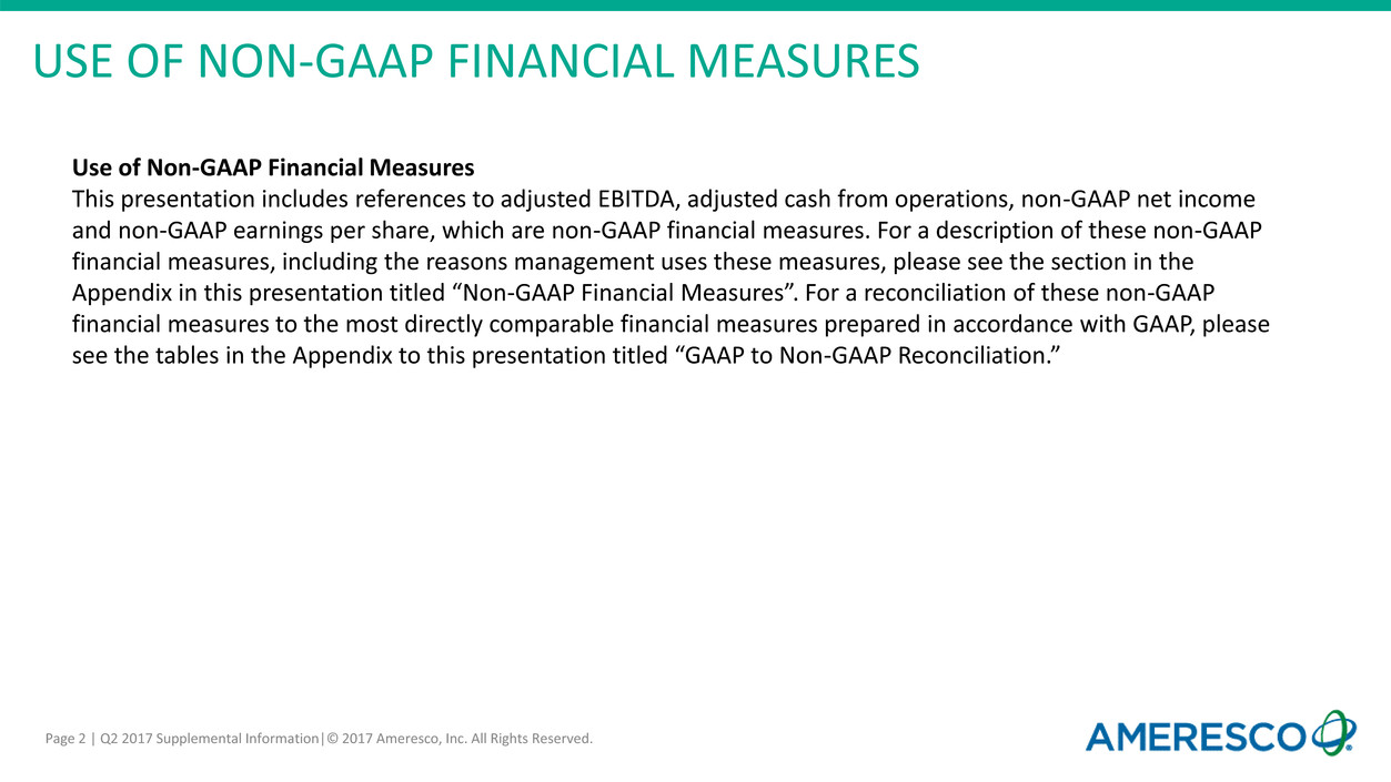 Page 2 | Q2 2017 Supplemental Information|© 2017 Ameresco, Inc. All Rights Reserved.