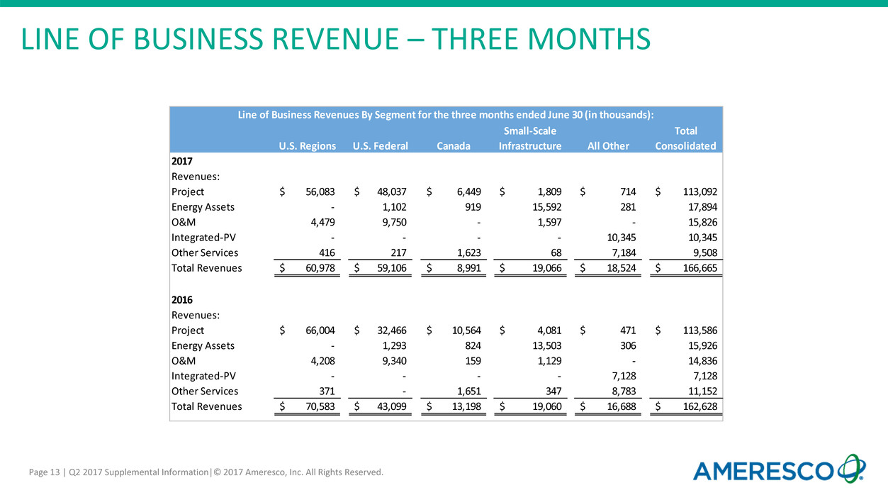 Page 13 | Q2 2017 Supplemental Information|© 2017 Ameresco, Inc. All Rights Reserved.