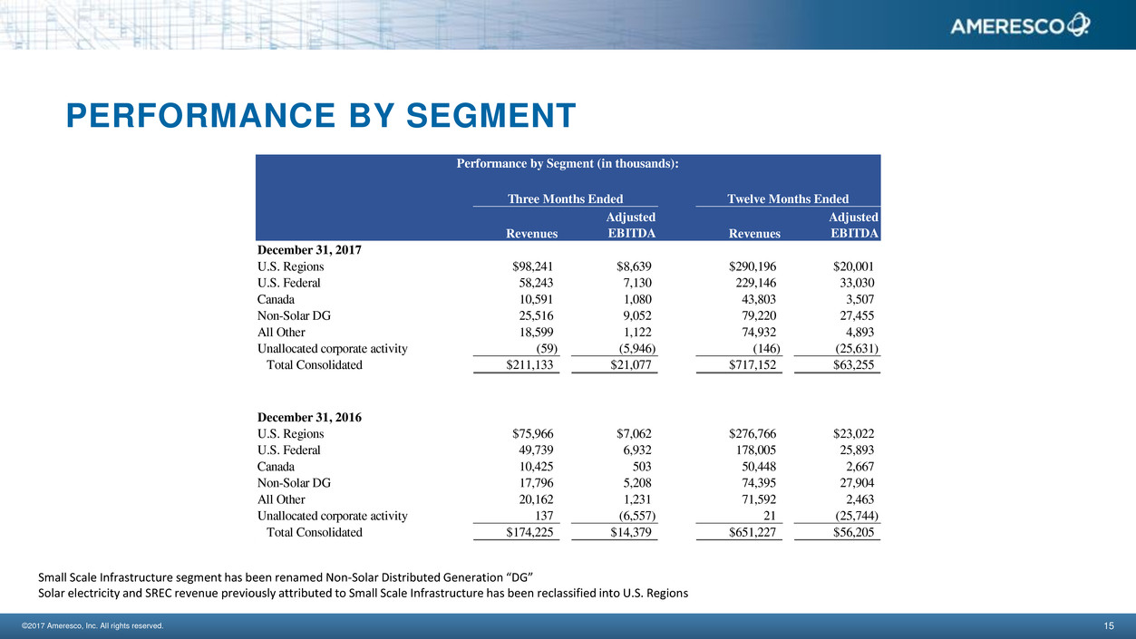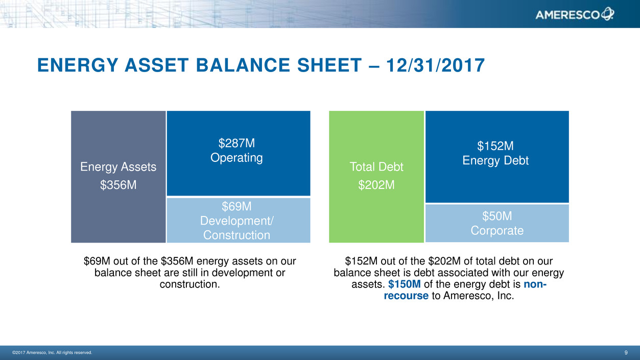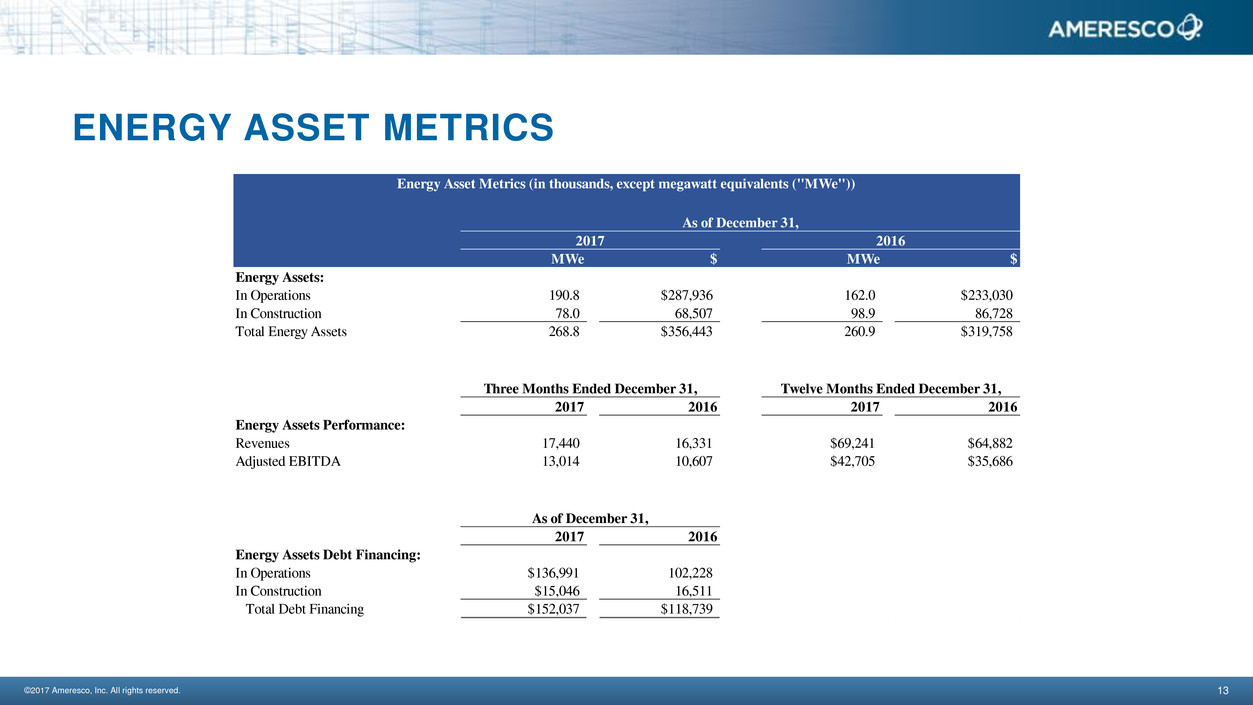 Any statements in this presentation about future expectations, plans and prospects for Ameresco, Inc., including statements about market conditions, pipeline