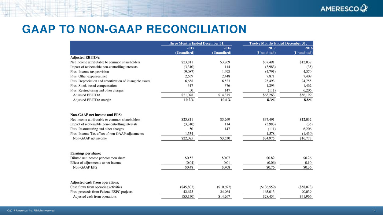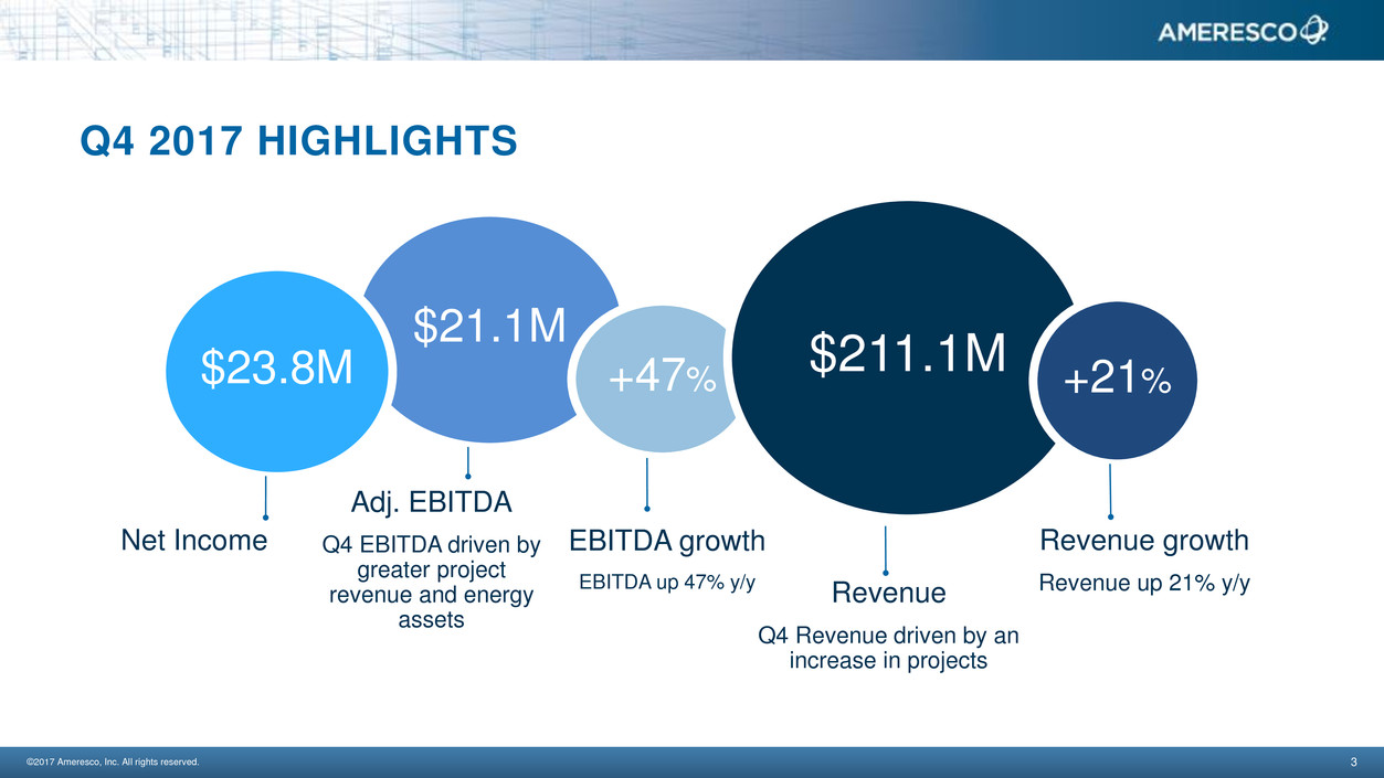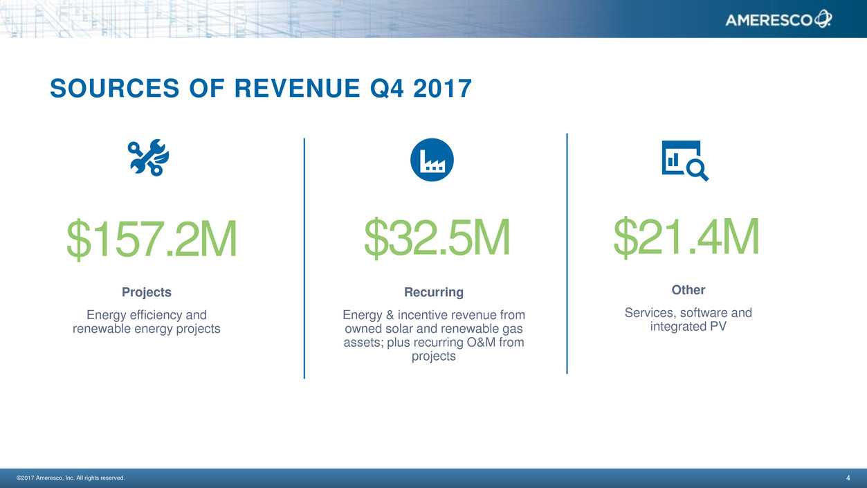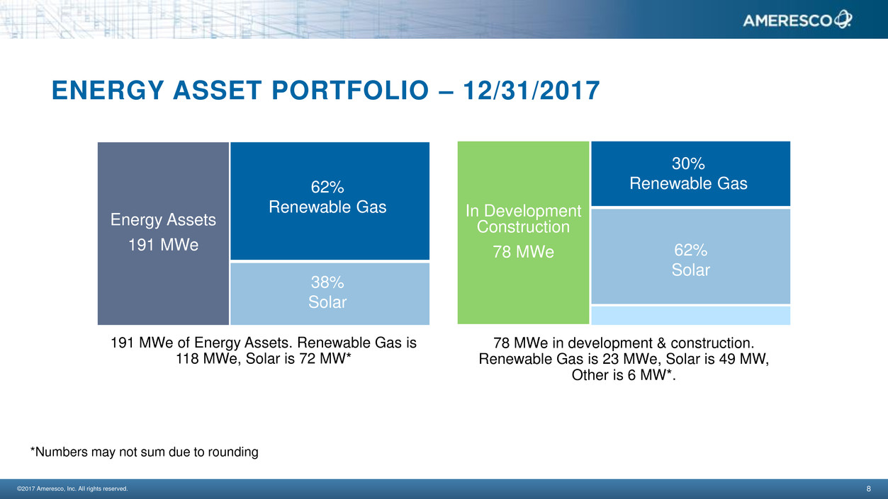 Any statements in this presentation about future expectations, plans and prospects for Ameresco, Inc., including statements about market conditions, pipeline