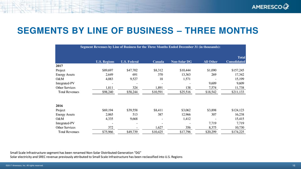 Small Scale Infrastructure segment has been renamed Non-Solar Distributed Generation “DG”