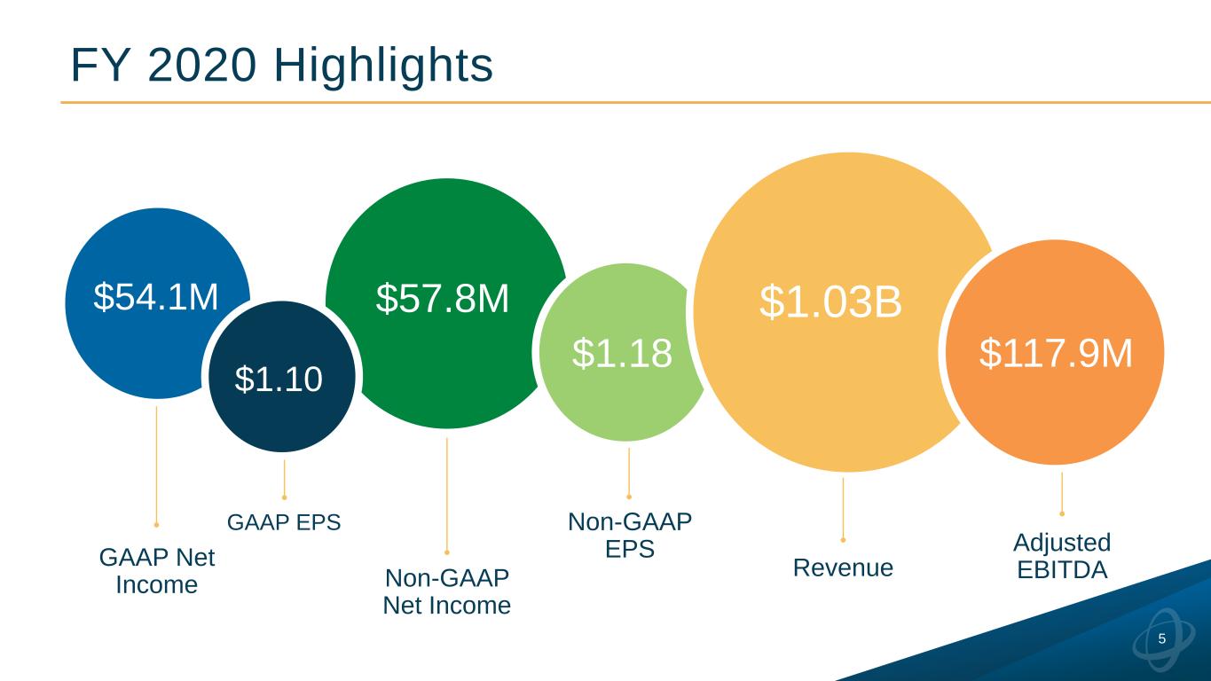 Q4 2020 Highlights 3 GAAP EPS Non-GAAP Net Income Non-GAAP EPS Adjusted EBITDARevenue GAAP Net Income $0.47 $35.7M$0.47 $23.5M $314.3M$23.0M