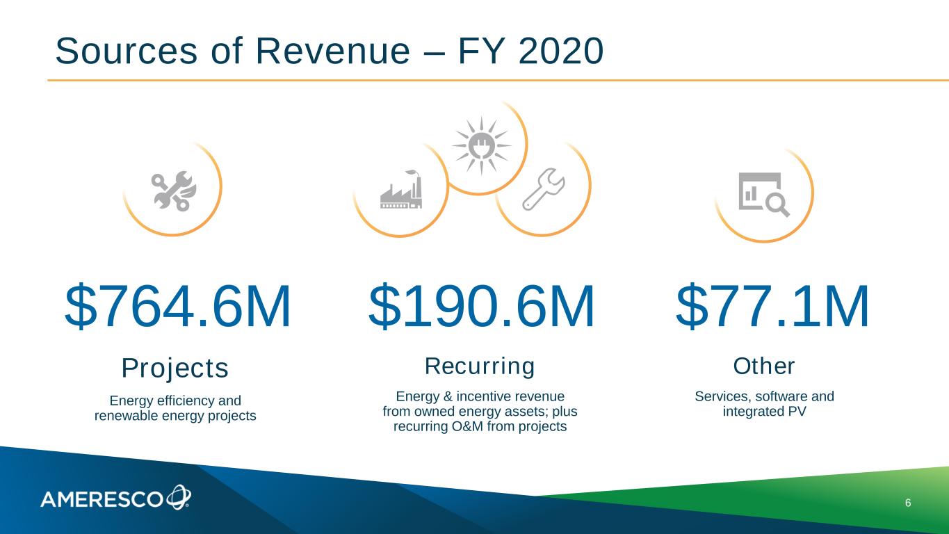 Sources of Revenue – FY 2020 6 Projects Energy efficiency and renewable energy projects Recurring Energy & incentive revenue from owned energy assets; plus recurring O&M from projects Other Services, software and integrated PV $764.6M $190.6M $77.1M