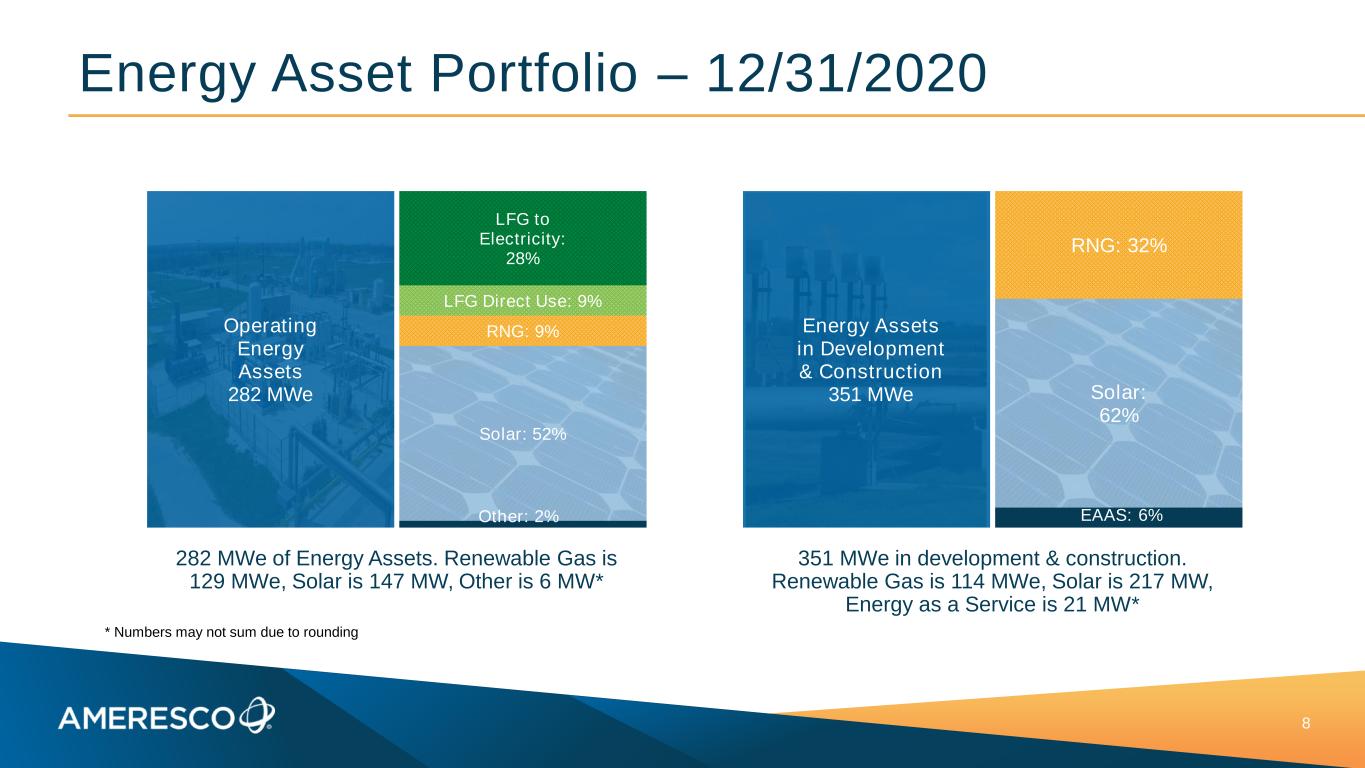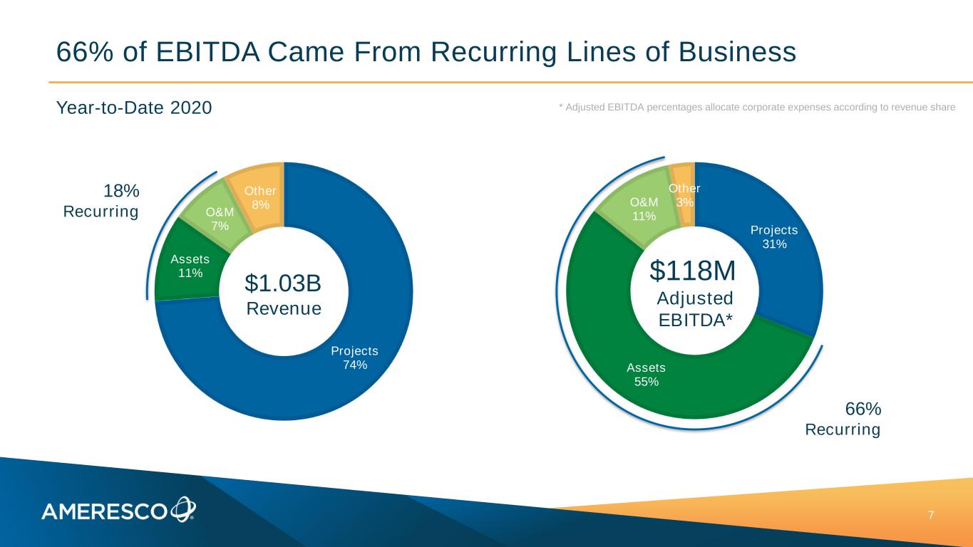 66% of EBITDA Came From Recurring Lines of Business 7 Projects 74% Assets 11% O&M 7% Other 8% 18% Recurring $1.03B Revenue Projects 31% Assets 55% O&M 11% Other 3% $118M Adjusted EBITDA* 66% Recurring * Adjusted EBITDA percentages allocate corporate expenses according to revenue shareYear-to-Date 2020