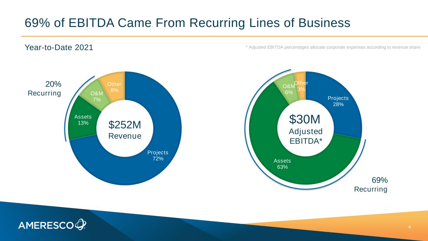 69% of EBITDA Came From Recurring Lines of Business 4 Projects 72% Assets 13% O&M 7% Other 8% 20% Recurring $252M Revenue Projects 28% Assets 63% O&M 6% Other 3% $30M Adjusted EBITDA* 69% Recurring * Adjusted EBITDA percentages allocate corporate expenses according to revenue shareYear-to-Date 2021