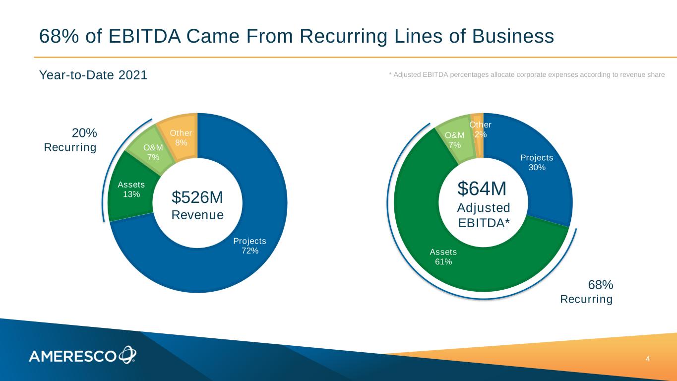 Sources of Revenue – Q2 2021 3 Projects Energy efficiency and renewable energy projects Recurring Energy & incentive revenue from owned energy assets; plus recurring O&M from projects Other Services, software and integrated PV $196.3M $56.5M $21.1M