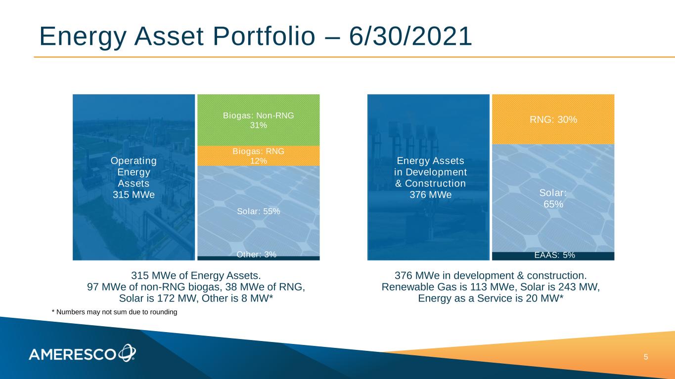68% of EBITDA Came From Recurring Lines of Business 4 Projects 72% Assets 13% O&M 7% Other 8% 20% Recurring $526M Revenue Projects 30% Assets 61% O&M 7% Other 2% $64M Adjusted EBITDA* 68% Recurring * Adjusted EBITDA percentages allocate corporate expenses according to revenue shareYear-to-Date 2021