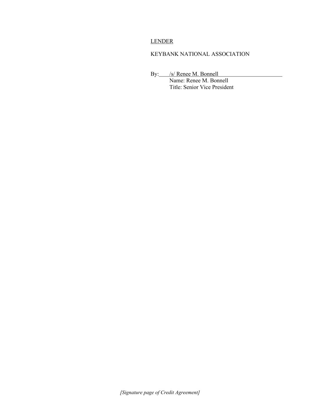 [Signature page of Credit Agreement] LENDER KEYBANK NATIONAL ASSOCIATION By: /s/ Renee M. Bonnell Name: Renee M. Bonnell Title: Senior Vice President