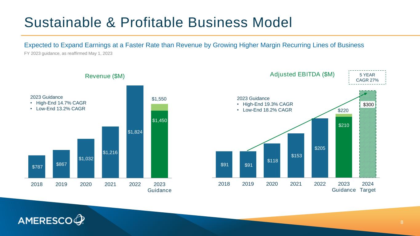 $0 $500,000,000 $1,000,000,000 $1,500,000,000 $2,000,000,000 $2,500,000,000 Awarded Project Backlog Contracted Project Backlog Operating Energy Assets O&M Backlog Additional Estimated Revenue from Market Price RNG** $1.2B Tremendous Forward Visibility: Backlog & Recurring Revenue Business 7 ~ 12-24 months to contract ~ 12-36 months of revenue 14 year weighted average PPA remaining* $1.1B 16 year weighted average lifetime * Estimated contracted revenue and incentives during PPA period ** Estimated additional revenue from operating RNG assets over a 20-year period, assuming RINs at $1.50/gallon and brown gas at $3.50/MMBtu with $3.00/MMBtu for LCFS on certain projects $2.0 billion $1.0 billion $2.3 billion $1.2 billion