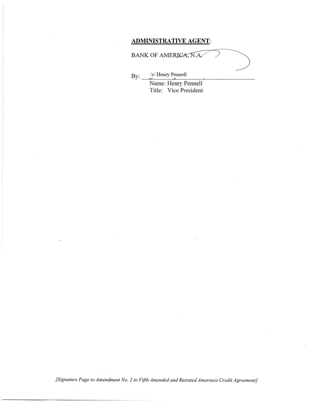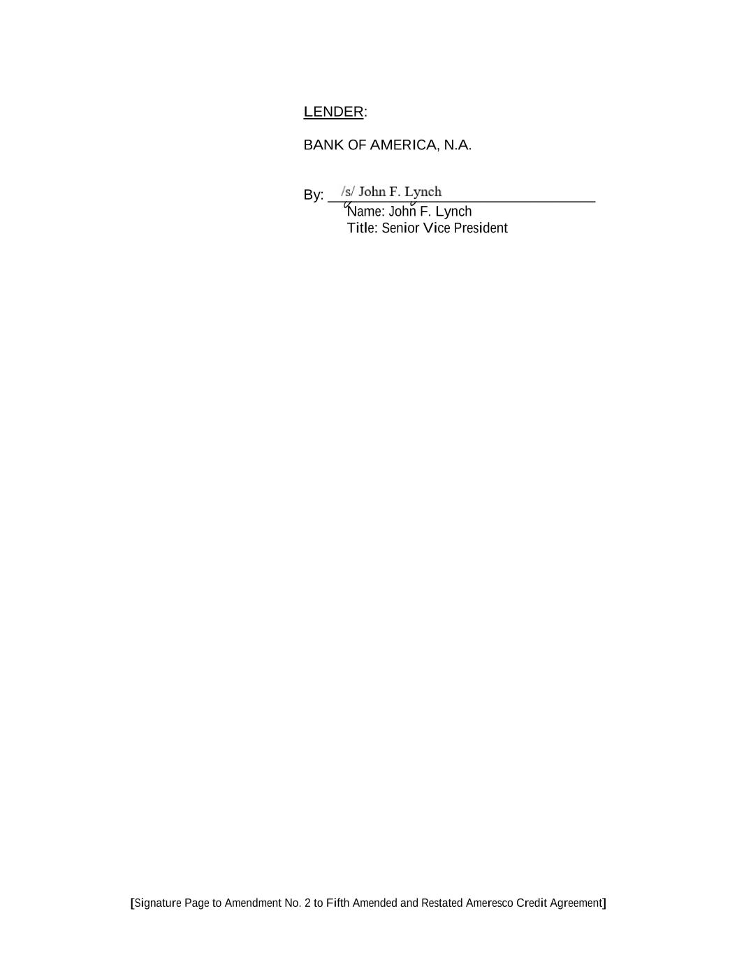 [Signature Page to Amendment No. 2 to Fifth Amended and Restated Ameresco Credit Agreement] LENDER: BANK OF AMERICA, N.A. By: _____________________________________ Name: John F. Lynch Title: Senior Vice President