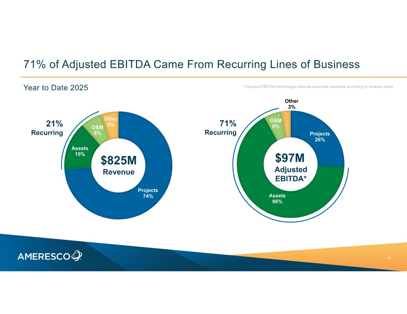 Sources of Revenue – Q2 2025 3 Projects Energy efficiency and renewable energy projects Recurring Energy & incentive revenue from owned energy assets; plus recurring O&M from projects Other Services, software and integrated PV $358.1M $90.9M $23.3M