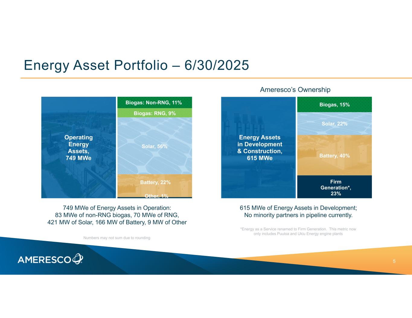 Projects 74% Assets 15% O&M 6% Other 5% $825M Revenue Projects 26% Assets 66% O&M 5% Other 3% $97M Adjusted EBITDA* 71% of Adjusted EBITDA Came From Recurring Lines of Business 4 * Adjusted EBITDA percentages allocate corporate expenses according to revenue shareYear to Date 2025 71% Recurring 21% Recurring