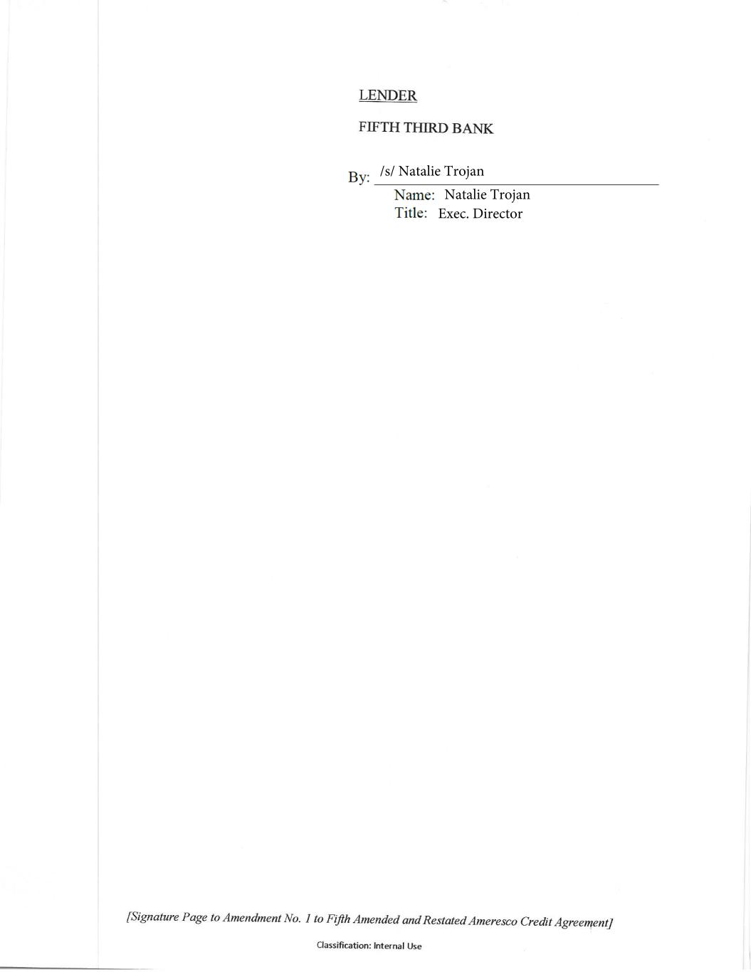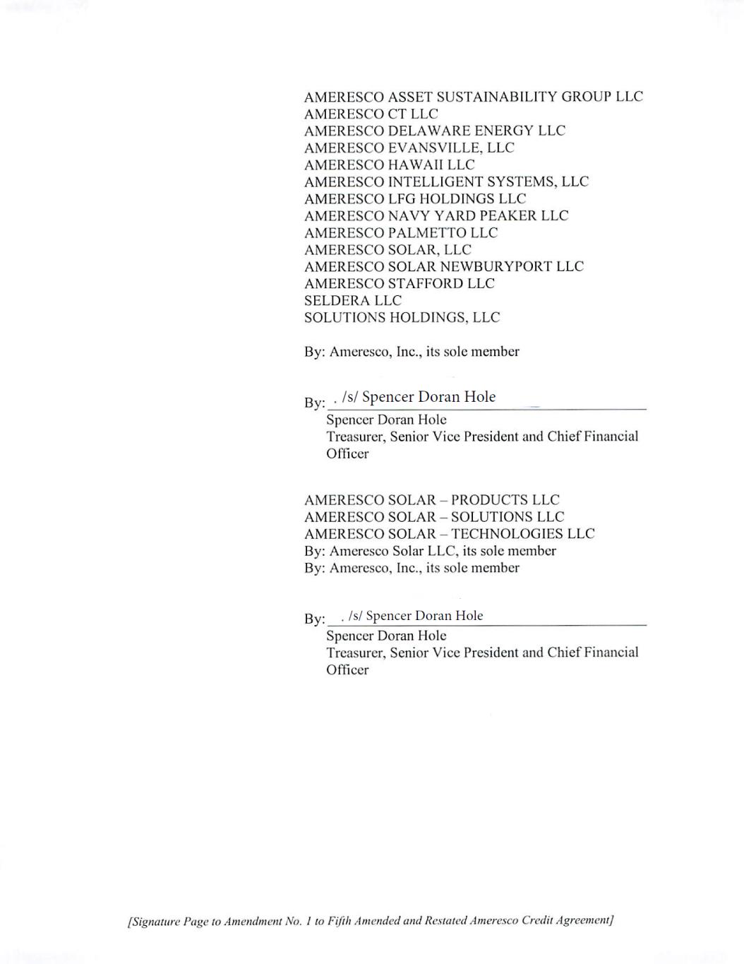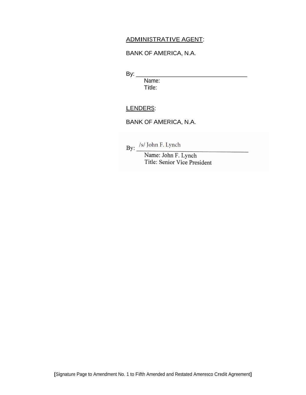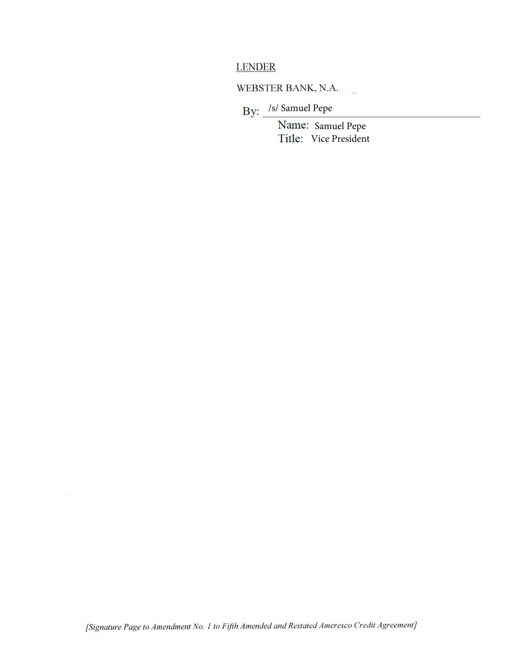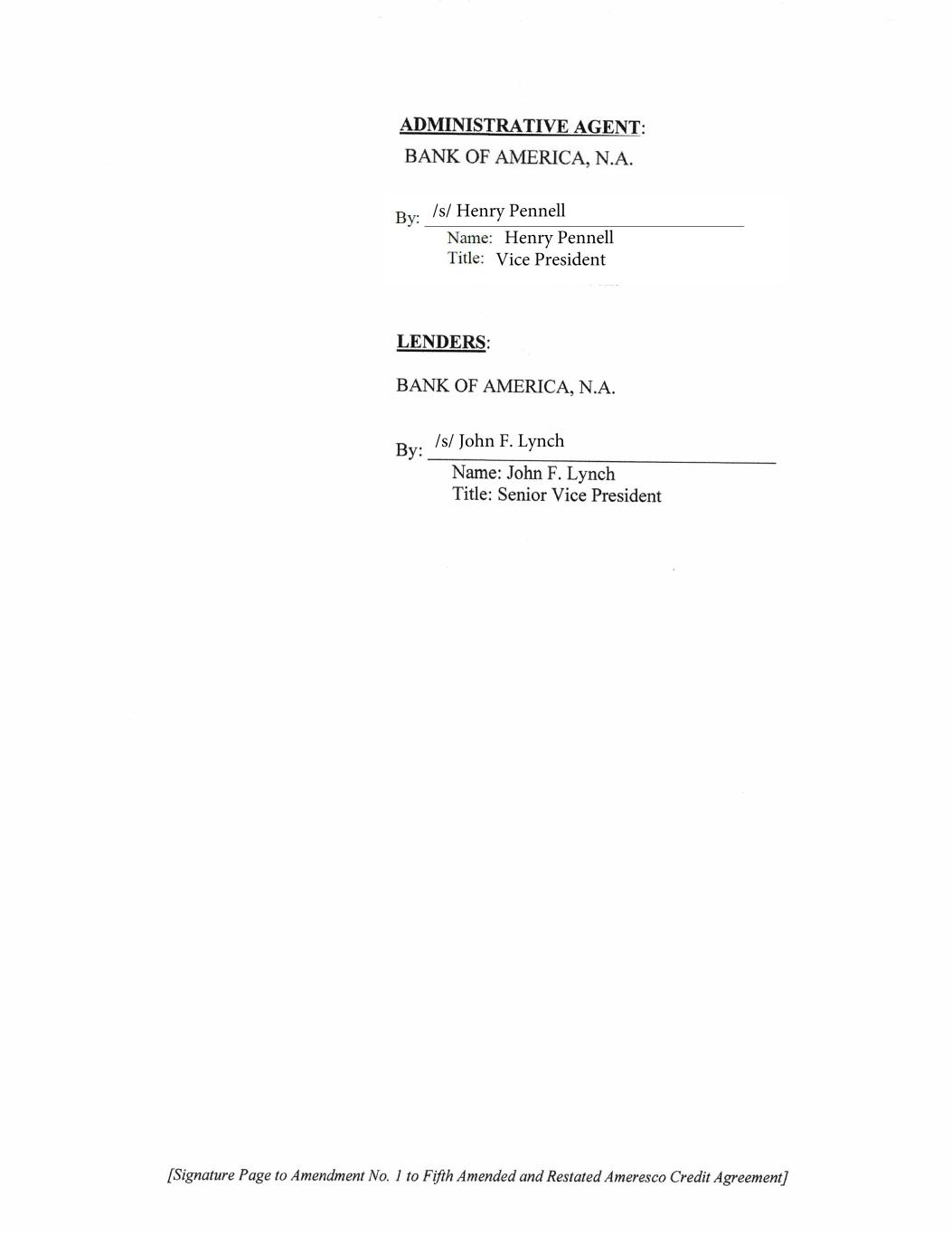 [Signature Page to Amendment No. 1 to Fifth Amended and Restated Ameresco Credit Agreement] ADMINISTRATIVE AGENT: BANK OF AMERICA, N.A. By: _____________________________________ Name: Title: LENDERS: BANK OF AMERICA, N.A. By: _____________________________________ Name: John F. Lynch Title: Senior Vice President