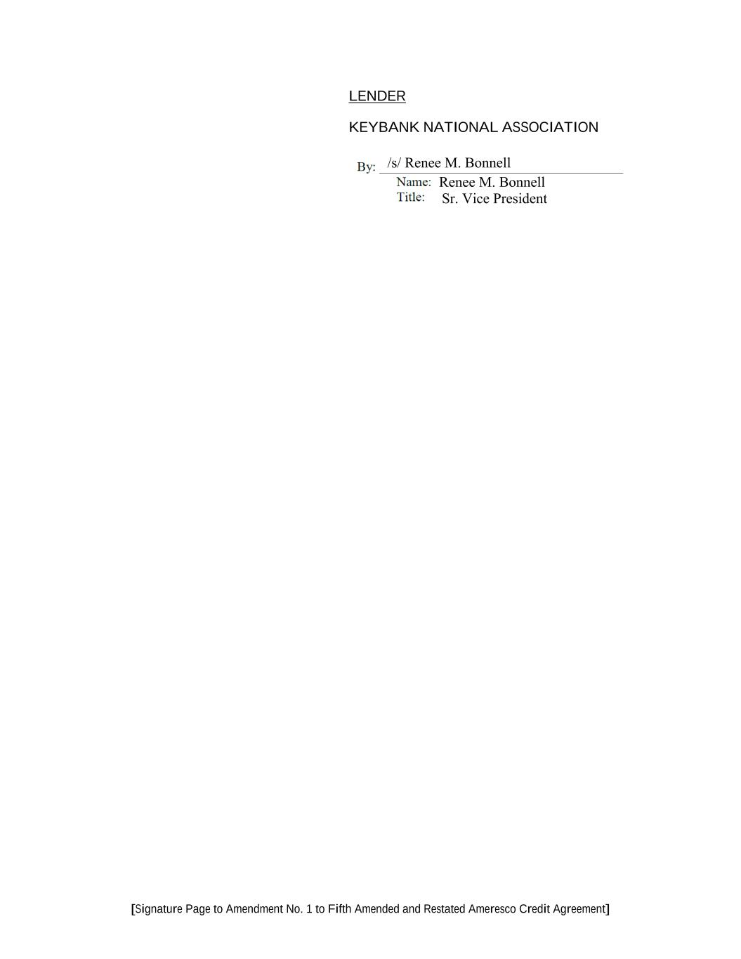 [Signature Page to Amendment No. 1 to Fifth Amended and Restated Ameresco Credit Agreement] LENDER KEYBANK NATIONAL ASSOCIATION By: Name: Renee M. Bonnell Title: Senior Vice President /s/ Renee M. Bonnell Sr. Vice President Renee M. Bonnell