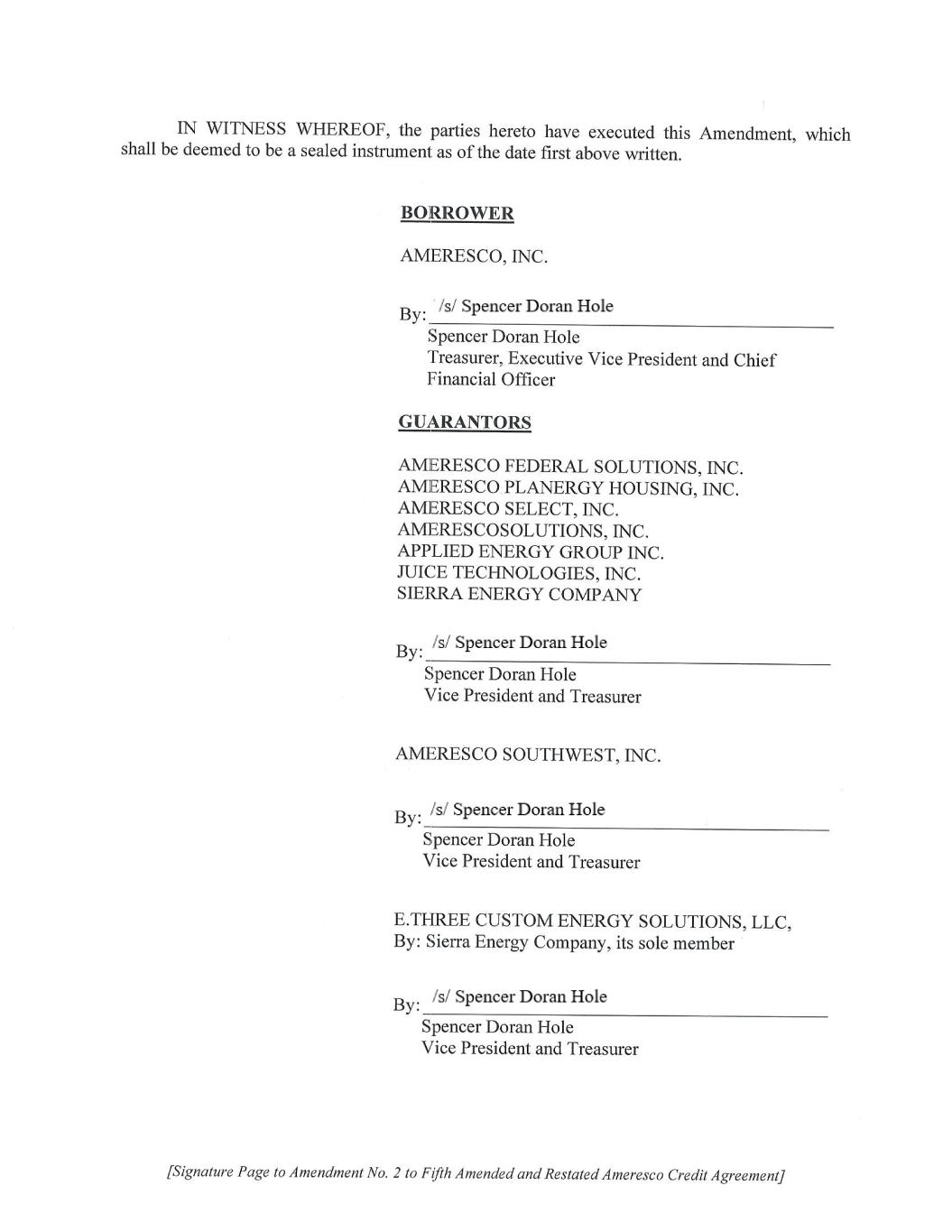 [Signature Page to Amendment No. 2 to Fifth Amended and Restated Ameresco Credit Agreement] LENDER: BANK OF AMERICA, N.A. By: _____________________________________ Name: John F. Lynch Title: Senior Vice President