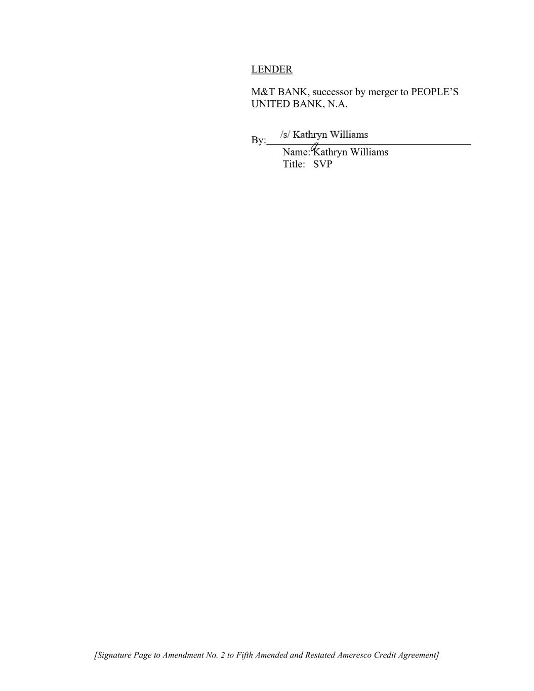 [Signature Page to Amendment No. 2 to Fifth Amended and Restated Ameresco Credit Agreement] LENDER M&T BANK, successor by merger to PEOPLE’S UNITED BANK, N.A. By: Name: Kathryn Williams Title: SVP